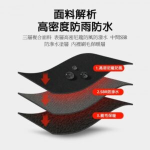 2.高密防水面料:高密尼龍,表面防潑水,雨天防護更周到
